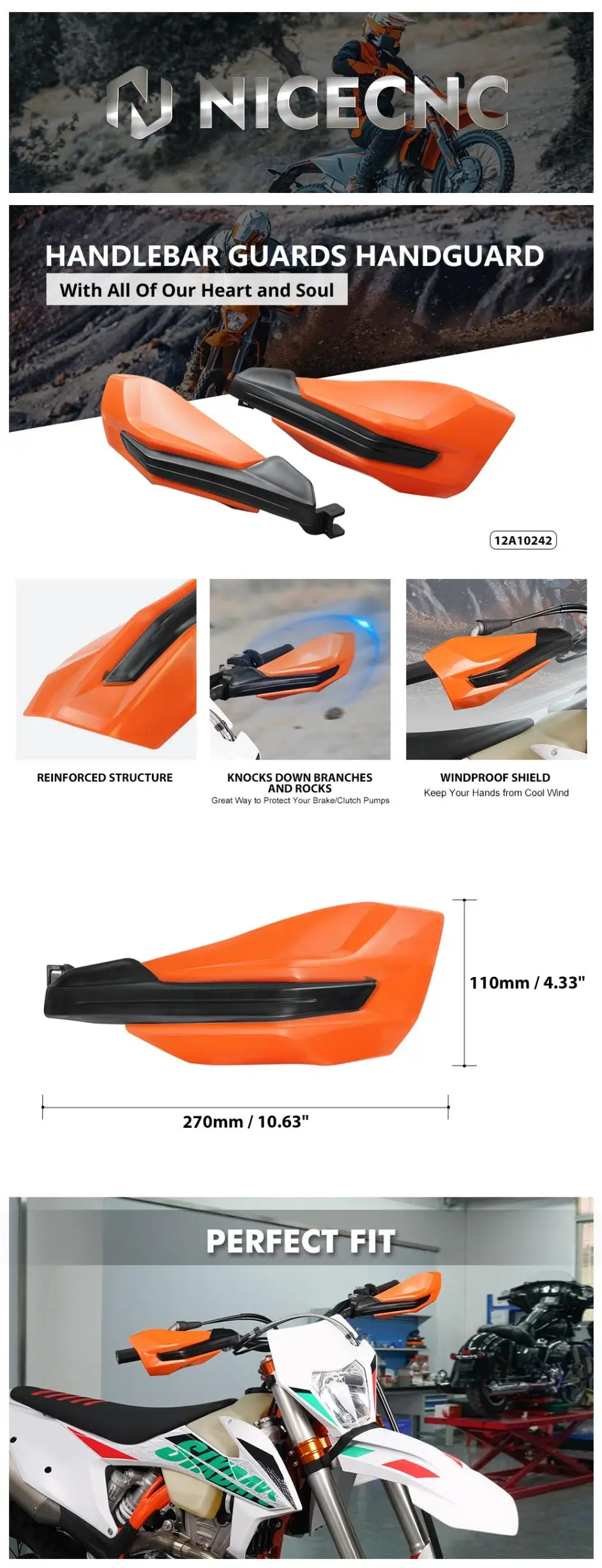 NiceCNC Handlebar Guards Handguard for KTM 125-500 XC/XCF/XCW/SX/SXF/EXC/EXCF/TPi/6D 2014-2023