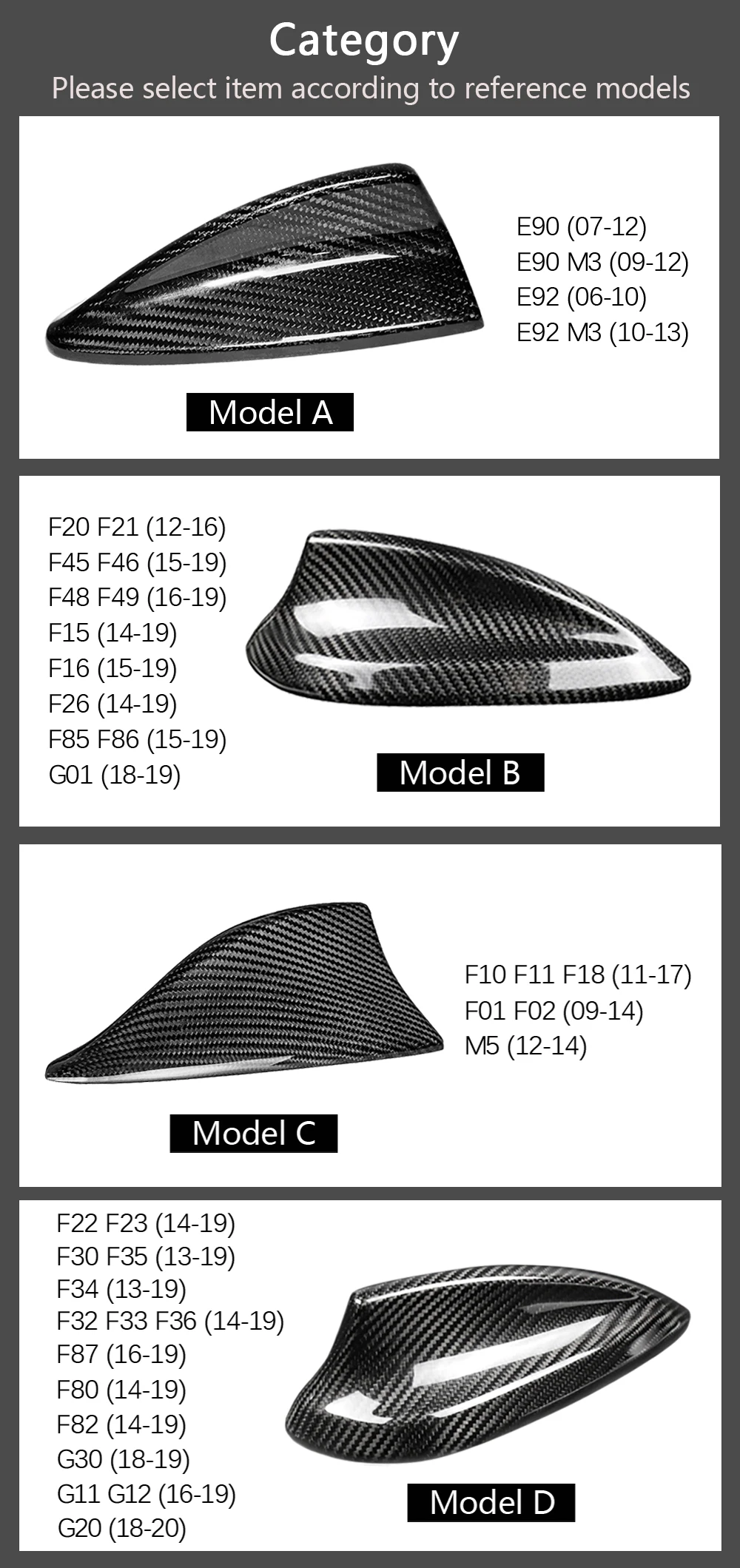 Real Carbon Pattern For BMW M2 M3 M4 Bmw Série 1,2,3,4,5,7 Series X1 X3 F22 F30 F34 F80 F87 F32 F36 F82 G11 G20 G12 G30 Shark Fin Antenna Cover