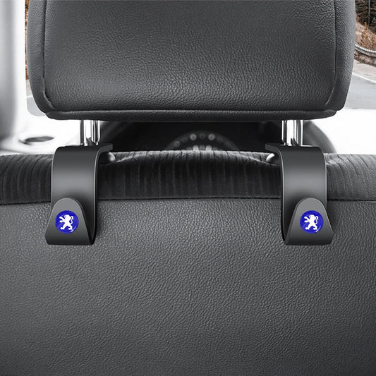 2 SUPPORTS DE SYMBOLES PEUGEOT Crochet d'appui-tête de dossier de siège de voiture, 2 pièces, Clip de retenue, accessoires de voiture pour Peugeot 206 207 307 3008 2008 308 407 408 508 301 208, etc.