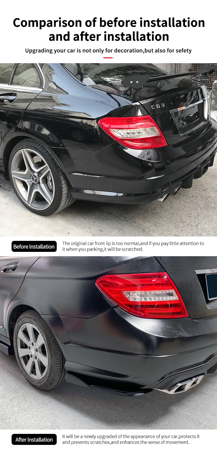 Coins de pare-chocs Mercedesdes W204 Séparateurs de pare-chocs arrière de voiture, tabliers, becquet de lèvre de coffre, diffuseur d'aile de Canard, Angle d'enveloppe pour mercedes-benz classe C W204 C63 2007 – 2014