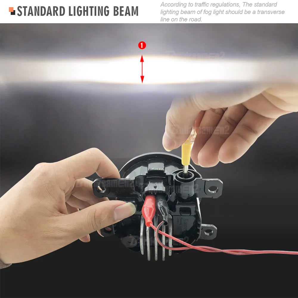 , the fog light is equipped with regulator, you can adjust the light beam according to the height of your car, to achieve the best driving vision, and avoid glare to passing cars;